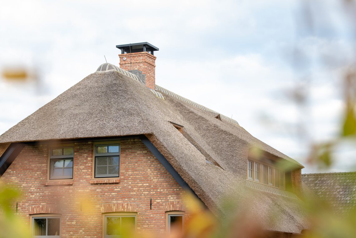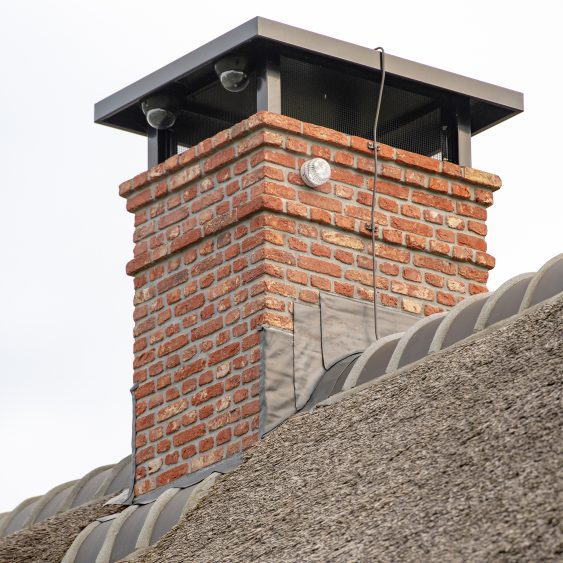 Gemetselde prefab schoorsteen op woonboerderij