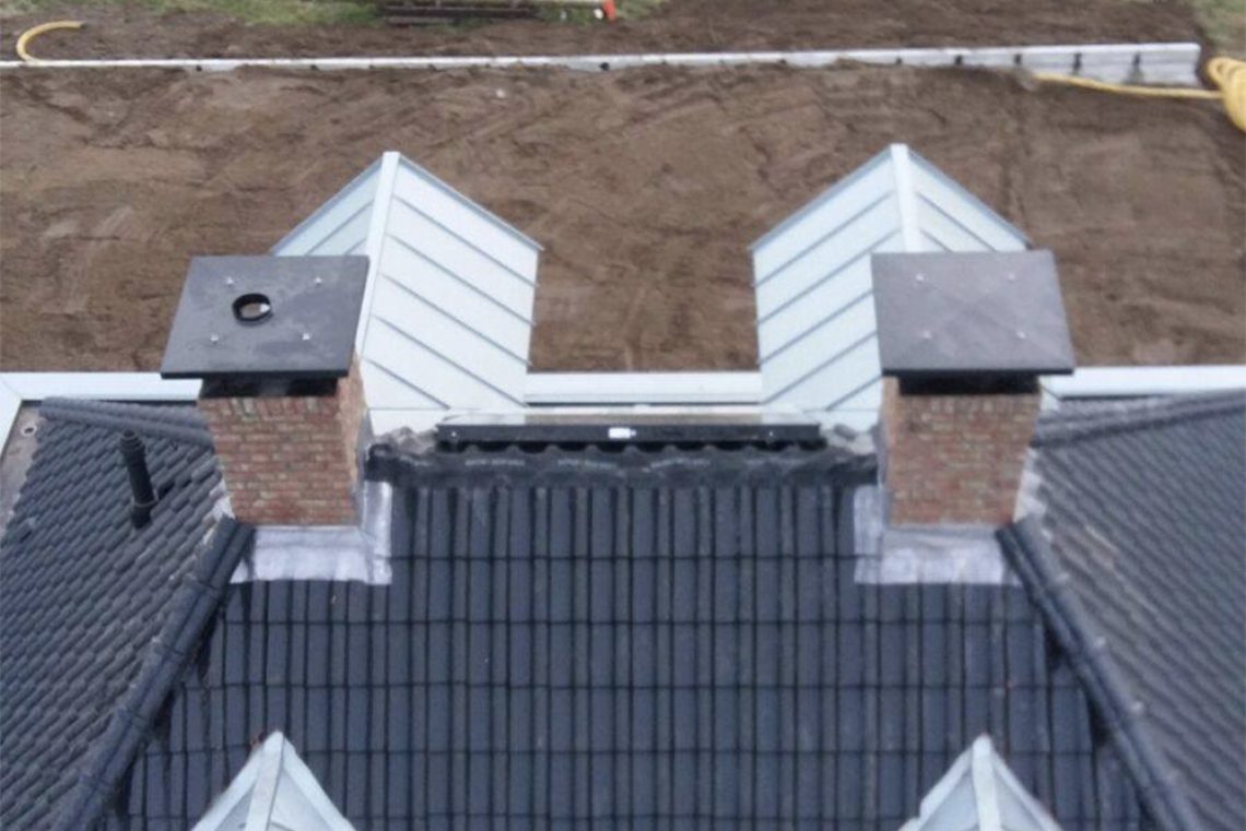 Prefab schoorstenen geplaatst